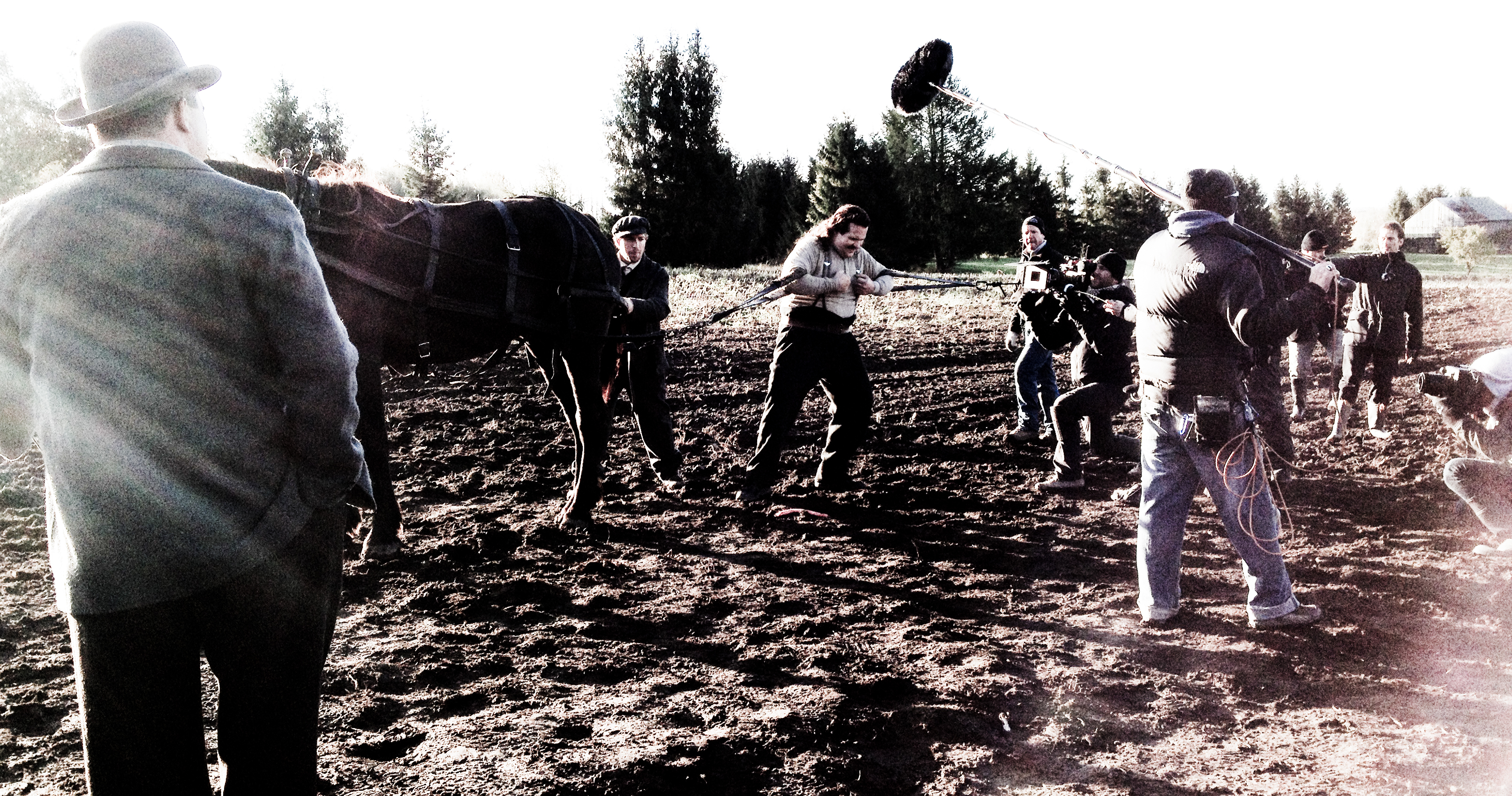 Sound recording on the set of the film Louis Cyr