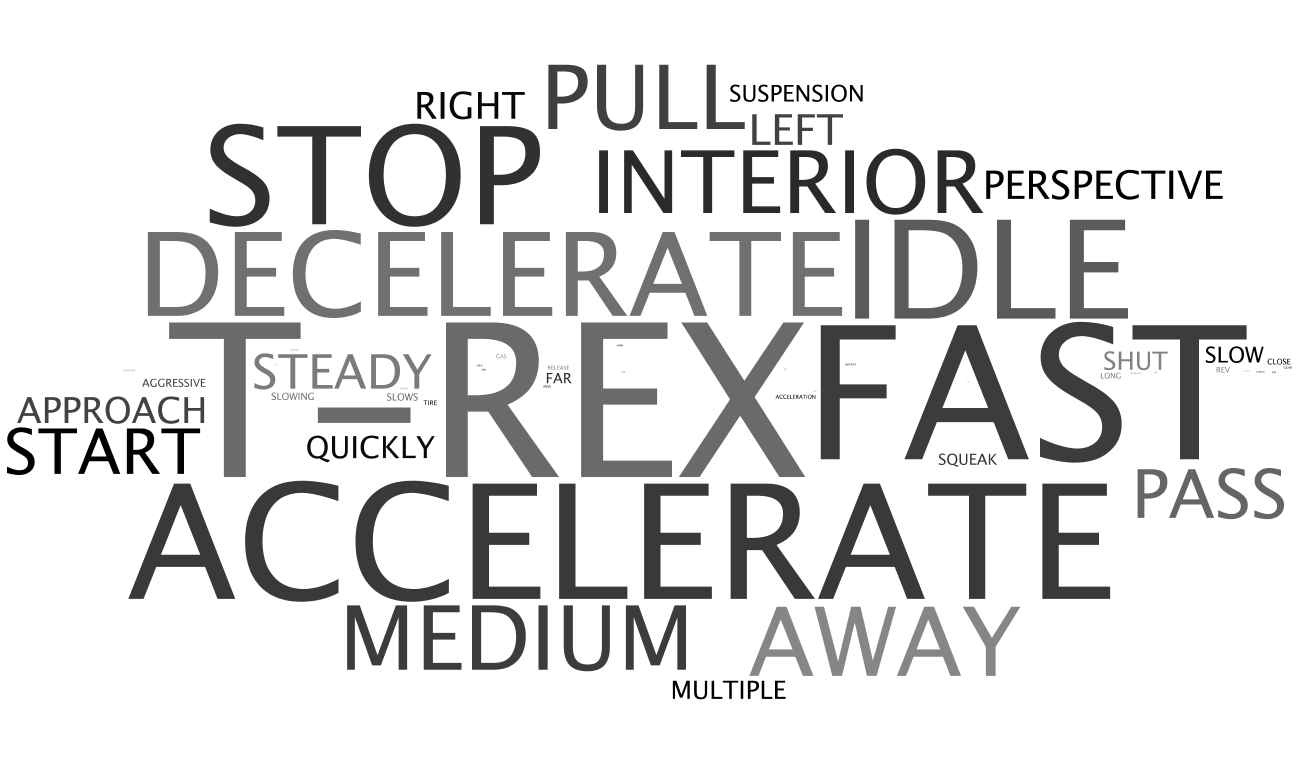 | 181 | T REX 2006 KAWASAKI MOTOR 1164 CC INTERIOR, IDLE PULL AWAY MEDIUM ACCELERATE TO FAST, SQUEAK SUSPENSION, DECELERATE ACCELERATE LONG TO STOP | 00:54.368 |